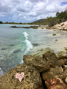 Hart van roze schelpjes aan het strand in Curaçao